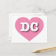 This postcard features a vibrant pink heart containing the bold white upper case letters DC, the official abbreviation for the District of Columbia. The reverse side of the postcard in blank, awaiting your handwritten sentiments or customized text.
