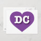This postcard features a vibrant purple heart containing the bold white upper case letters DC, the official abbreviation for the District of Columbia. The reverse side of the postcard is blank, awaiting your customized text or handwritten sentiments.