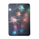 Cinq vapeurs de feux d'artifice se reflètent dans l'eau sombre sous-jacente - une explosion de bleu pâle, rose rose, or brillant, vert menthe, et au centre étincelle de toutes les couleurs de l'arc-en-ciel.