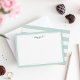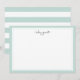 Nos cartes à plat personnalisées chic ont une bordure vert seaglass pastel avec votre nom ou choix de personnalisation grâce au haut en lettres de script moderne gris charbon. Cartes inversées à la menthe horizontale et bandes blanches.