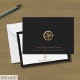 Faites une impression durable avec nos cartes noires et or. Cette simple carte professionnelle présente un emblème de boussole en or métallique brossé qui peut être utilisé tel quel ou remplacé par le logo de votre entreprise. Le nom et le slogan de votre entreprise sont présentés dans une élégante typographie classique dorée, Parfait pour les notes d'appréciation des employés, les notes de remerciement des clients, et plus encore.