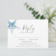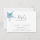 Conçu pour coordonner avec mon ensemble de papeterie mariage étoilée, cette carte de réponse comprend une réplique de mon étoile de mer moderne dans les couleurs de mariage de la plage de bleu. Un espace est prévu pour que les clients puissent ajouter leurs réponses et un choix de repas simple. La carte revient à une couleur bleue solide offerte. Idéal pour les mariages du printemps et de l'été en Floride du Sud. Si vous cherchez plus d'inspiration de mariage sur la plage ou de papeterie mariage correspondante visitez www.zazzle.com/dotellabelle