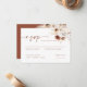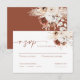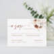 Notre élégante carte RSVP est le moyen idéal pour annoncer votre mariage à vos invités. Chaque carte présente des motifs floraux complexes et une belle typographie aux couleurs neutres, dont les tons terre, beige et terre. Imprimés sur un carton de haute qualité, ils impressionneront vos invités et donneront le ton de votre journée spéciale. Ma collection de mariages au design boho, avec des fleurs d'aquarelle, des pampas et des tons terreux, comprend tout ce dont vous avez besoin pour rendre votre journée spéciale vraiment inoubliable. Collection : https://www.zazzle.com/collections/watercolor_boho_pampas_wedding_collection-119346973241911782