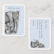 Cette mignonne carte grise de l'éléphant est parfaite pour envoyer un message rapide ou pour remercier un être cher. De chaque côté de la carte se trouve une illustration d'éléphant différente contre un arrière - plan bleu pastel avec une arête grise. Vous pouvez personnaliser l'avant avec un court message de votre choix en haut, et au contraire, vous pouvez taper vos propres mots à imprimer (idéal si vous avez besoin d'envoyer le même message à plusieurs personnes) ou supprimer le texte et le laisser vide, vous permettant d'écrire votre message à la main.