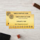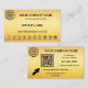 Carte perforée de fidélité artistique accrocheuse en taille carte de visite. Un design ocher et or brillant avec noir. Vous pouvez ajouter votre propre logo ainsi que l'URL personnalisée au modèle de code QR. Les emplacements de poinçonnage sont optionnels, afin de pouvoir également utiliser cette carte comme un carte de visite régulier.