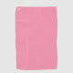 Une serviette rose avec un motif texturé est montrée sur un fond neutre. Elle a un petit anneau en or dans le coin supérieur gauche pour la suspendre.