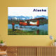 A bush pilot stands near his de Havilland Canada DHC-2 Beaver floatplane on the shore of a lake in the far north; mountains and trees are in the distance. Text reading "Alaska" also appears. This image was derived, in part, from a US Fish and Wildlife Service photo.