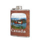 A bush pilot stands near his de Havilland Canada DHC-2 Beaver floatplane on the shore of a lake in the far north; mountains and trees are in the distance. Text reading "Canada" also appears. This image was derived, in part, from a US Fish and Wildlife Service photo.