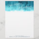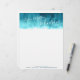 Art moderne aqua bleu turquoise en-tête peint vert. Customisez avec vos propres noms, date de l'est, coordonnées et coordonnées, idéal pour les jeunes mariés pour écrire une lettre et merci. Imprimé d'une peinture abstraite de Sarah Trett www.sarahtrett.com pour www.mylittleedenweddings.com