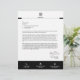 Un simple modèle en-tête d'entreprise personnalisé dans un style minimaliste moderne avec une ligne noire simple qui peut facilement être mise à jour avec le logo de votre entreprise et le pied de page en-tête comprenant votre nom d'entreprise, adresse, téléphone, courriel, site Web et code QR