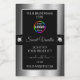 The design features a noble shimmering silver frame with fine decor lines, on a plain black background.