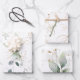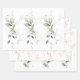 Joli ensemble de trois (3) papiers d'emballage pour vos cadeaux. Impressionnez-les avec cette aquarelle peinte feuille verdure, feuillage, design botanique en vert profond et pastel et olive avec accent or.