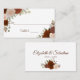 Ces élégantes cartes d'escorte sont conçues pour vous permettre d'écrire le nom et le numéro de table de votre invité. Elles présentent un arrière - plan blanc classique avec roses et feuillage peints à la main en automne ou en automne dans les tons de rouille orange et de bois brûlé. L'avant est un espace d'écriture pour le nom et le numéro de table de votre invité, et l'arrière a les noms du couple de mariages dans un script élégant en lettres avec la date du mariage.