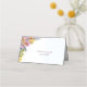 Une carte de table mariage à fleurs rose et orange qui comprend les noms de la mariée et du marié ainsi que leur date de mariage.