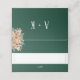 Carte mariage vert foncé, avec fleurs d'abricot aquarelle et feuillage de jardin. Espace à l'intérieur pour un message spécial de la mariée et du marié à leurs invités. Un design botanique contemporain simple mais élégant, inspiré du style boho vintage.