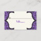 Les crânes damassent violet noir motif Halloween mariage carte place. Ce design élégant et formel est doté d'un motif damassé à fleurs et crâne et d'un cadre en ivoire au centre. Design classique mais contemporain avec deux polices : vintage et cool. Design élégamment éffrayant, parfait pour les mariages de automne gothiques ou d'Halloween.