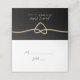 Guidez vos invités avec raffinement en utilisant cette élégante carte de place en or et en mariage noir. Doté d'un coeur romantique à cordes d'or et d'un arrière - plan noir minimaliste, cette carte pliée ajoute une touche design et moderne à vos tables de réception de mariage. Personnalisez-le avec vos noms, votre date de mariage et vos coordonnées d'invités pour une expérience d'événement soignée et transparente.