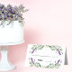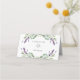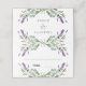 Un établissement moderne et élégant. Un arrière - plan blanc décoré de fleurs de lavande, de fleurs et de verdure d'eucalyptus. Personnalisez et vos noms. Ajoutez à la main les noms de vos invités et leur numéro de table.