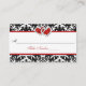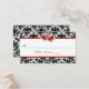 Cette carte mariage damassé noire et blanche ou carte d'escorte a une paire de parties scintillant FAUX rouge IMPRIMÉE et des coeurs de bijoux en diamant qui correspond au faire-part de mariage ci-dessous. Si vous avez besoin d'autres articles correspondants, veuillez envoyer votre demande par courriel à niteowlstudio@gmail.com.