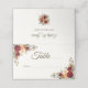 Ajoutez une touche d'élégance rustique à votre décor de table avec ces cartes-lieux pliées, conçues avec des roses bordeaux aquarelle, des dahlias oranges brûlées, de la verdure d'eucalyptus et des feuilles d'automne dorées. Parfait pour les mariages, les douches nuptiales, les dîners de Thanksgiving et autres célébrations d'automne. Personnalisez-vous avec les noms d'hôtes et les numéros de table pour créer une atmosphère chaleureuse et accueillante pour votre journée spéciale.