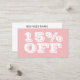 Elégant Pastel Pink Moderne tendance réduction. Merci commande emballage insérer des coupons pour vos clients. Personnalisez tout le texte et les couleurs dans ce modèle de carte de réduction.