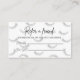 Présentez notre carte de taille d'entreprise chic "Référez-vous à un ami", spécialement conçue pour aider les artistes et les salons à élargir leur clientèle tout en récompensant les clients fidèles. Ces cartes blanches élégantes sont dotées d'un arrière - plan design élégant et subtil, parfait pour toute entreprise de services de foudre qui souhaite ajouter une touche d'élégance à ses supports marketing. L'avant de la carte affiche clairement l'expression "Référez un ami" et offre une incitation séduisante : "Les deux reçoivent 10% de réduction sur votre prochain service de Lash." Cette simple promotion encourage non seulement les clients existants à introduire de nouveaux clients, mais garantit également que le référent et le référé bénéficient d'un rabais, augmentant ainsi la satisfaction et la fidélité des clients. Chaque carte comprend une ligne pour "Referred by" et "New Client", ce qui permet de suivre facilement les références et de s'assurer que les rabais sont appliqués avec précision. Idéales pour les salons et par des professionnels indépendants de l'extension de la fouille, ces cartes de référence sont un must parmi les fournitures pour petites entreprises. Ils servent non seulement d'outil marketing puissant pour attirer de nouvelles entreprises, mais aussi de moyen de montrer de l'appréciation aux clients existants, en favorisant une communauté autour de votre marque.
