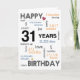 Tourner à 31 ans est une occasion capitale dans la vie de quiconque, alors pourquoi ne pas la célébrer en envoyant des voeux sincères de 31 ans. Le devant de la carte d'anniversaire est orné de messages de joie, d'amour, de célébration, et toutes les choses excitantes qui rendent la journée extraordinaire.