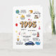Revenez à l’année 1995 avec cette carte d’anniversaire qui déborde de charme vintage. Plus qu’une simple carte, c’est une mini capsule temporelle remplie de faits captivants de l’année de votre naissance. Avant et au centre, 1995 prend la vedette, entouré d'un trésor de triviales amusantes., la population des États-Unis et du monde, le coût moyen d'une nouvelle maison, les prix de l'essence et du pain, des événements emblématiques, et même les noms de bébés les plus populaires de l'époque. C'est comme ouvrir une fenêtre sur le passé. Que vous fêtiez un anniversaire marquant ou que vous souhaitiez simplement partager un sourire, cette carte vous garantit des souvenirs étincelants, du rire et des conversations chaleureuses. Réfléchi, nostalgique et plein de personnalité, c’est la façon idéale d’honorer quelqu’un de spécial avec une explosion du passé. À l'intérieur de la carte d'anniversaire : et beaucoup, beaucoup d'autres!
