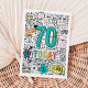 Une carte amusante de style doodle 70th Birthday pour célébrer un 70th Birthday très spécial. Avec un design coloré, cette carte ajoutera la pop dont vous avez besoin pour une journée mémorable. Fabriqué avec amour par Oh Gorgeous Studio