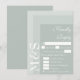 Simple carte de mariage chic RSVP avec choix de repas pour les mariées qui ornent leurs cérémonies dans la sauge moderne. La suite mariage chic a une police blanche moderne avec des initiales monogramme sur le côté.