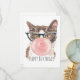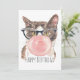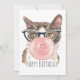 L'illustration de l'aquarelle de Whimsical montre un chat portant des lunettes de style rétro funky soufflant de la gomme à bulles. Texte personnalisable "Joyeux anniversaire"