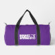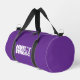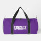 Ce petit sac en duffel est montré dans une couleur solide de violet avec des accents noirs. Montré avec un imprimé Husky Strong. Customisez cet objet ou achetez comme indiqué. Impression sous licence