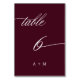 De Table Calligraphie romantique Mariage numéro 6, Bourgogn