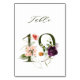 Cette carte de numéro de table comporte un numéro vert orné d'aquarelles illustrant des fleurs et des feuilles en violet, orange, rose et vert. Ce numéro de table est parfait pour les mariages, diplômes, baby showers, douches nuptiales, anniversaires et autres événements. Tableau 19. Veuillez vérifier tous les numéros disponibles.