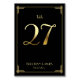 Cartes de numéro de table du mariage Great Gatsby Art Déco avec numéro d'or 27 et texte modifiable, où vous pouvez ajouter vos noms et date de mariage, imprimé sur arrière - plan noir