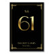 Carte de numéro de table du mariage Great Gatsby Art Déco avec numéro d'or 61 et texte modifiable, où vous pouvez ajouter vos noms et date mariage, imprimé sur arrière - plan noir
