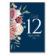 Cette élégante carte de numéro de table présente un feuille rose exquis et poussiéreux sur un riche arrière - plan de marine. Vous pouvez entrer chaque numéro de table séparément dans le menu personnaliser. Il s'agit d'une suite mariage assortie qui comprend des menus, des invitations de mariage et plus encore.