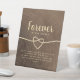 Elégant, simple, rustique, mariage monument de table de pied de table signe avec faux coeur de corde or et script de calligraphie moderne.