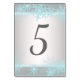 Cartes de numéro de table Snowflake avec des flocons de neige bleus assez turquoises sur un arrière - plan gris argenté. Vous pouvez ajouter les numéros dont vous avez besoin dans le style de police et la couleur de votre choix.