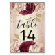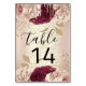 De Table Tableau numéro 14 Rose floral Marsala Bourgogne