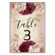 De Table Tableau numéro 3 Rose Florals Marsala Bourgogne