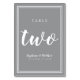 Ce design a été créé pour des célébrations mariages intimes plus petites. Simple, minimaliste et élégant Numéro de table de mariage DEUX design contemporain avec une bordure double en blanc immaculé sur un arrière - plan gris ultime tendance. Le design chic offre une sophistication intemporelle et moderne. Personnalisez la conception de table mariage avec vos détails mariages en lettres et en script blancs. Le dos de la carte est un double de l'avant. Commandez-en une pour chaque table avec les numéros de table individuels. Les tables ONE à TEN sont conçues individuellement et sont disponibles dans mon magasin InvitationSuites sur Zazzle. Bien qu'il soit spécialement conçu pour un lieu plus petit, si vous avez besoin de numéros supplémentaires, envoyez-nous un courriel à InvitationSuites@gmail.com .