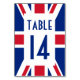 Simple rectangle blanc avec motif Union Jack en rouge, blanc et bleu avec numéro de table pour correspondre.