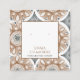 Un design de carte d'oreille de style boho terne avec des teintes abstraites marron et gris muet avec une plaque centrale. Le type coloré est utilisé en brun et noir pour récupérer les couleurs dans le design abstrait.