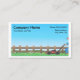 Un carte de visite montrant un homme tondant une pelouse avec une clôture de piquetage. C'est pour ceux qui font des travaux de chantier et d'entretien.