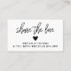Cartes de référence modernes en noir et blanc "Partagez l'amour" qui peuvent être personnalisées avec vos détails d'affaires sur le dos.