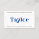 Carte de visite, taille : États-Unis : 8,9 cm x 5,1 cm, papier : Standard Semi-brillant, coins : Carré