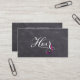 Design moderne et élégant de typographie lettrée à la main en blanc, placé sur un arrière - plan de tableau... avec votre nom et vos outils amusants à l'avant, et vos coordonnées à l'arrière. Parfait pour tous les professionnels des cheveux. Si vous n'avez pas de site Web, vous pouvez remplir ce champ de texte avec un autre texte. Des versions supplémentaires de cette conception offrent vos informations sur les réseaux sociaux et / ou votre code QR, et sont situées dans cette collection. Ajoutez vos détails en suivant le lien "Personnalisez ce modèle". Si votre nom est plus court, vous pouvez pousser le mot "par" 1 ou 2 espaces et pousser votre nom le même nombre d'espaces, pour obtenir votre nom juste là où vous le voulez. Si vous désirez une couleur qui n'est pas déjà offerte dans cette collection, ou une aide à la personnalisation, n'hésitez pas à me contacter par message ici sur Zazzle, ou par email. susanmingaydesigns@gmail.com