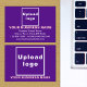 Carte de forme rectangle de petite taille que vous pouvez customiser pour mettre votre nom d'entreprise et d'autres informations de votre entreprise. Vous pouvez l'utiliser comme matériel de marketing pour annoncer votre entreprise ou pour promouvoir votre marque auprès de clients ou de clients. Petite carte personnalisable que vous pouvez utiliser pour développer la sensibilisation de marque. Vous pouvez également l'utiliser comme accessoire de votre matériel d'emballage de produit ou comme insert d'emballage. Les couleurs design sont des textes rose et blanc sur arrière - plan violet. Pour customiser cette carte, téléchargez votre logo d'entreprise, tapez votre nom d'entreprise, votre adresse, votre numéro de téléphone, votre adresse électronique et votre site Web ou votre page de médias sociaux. Après avoir téléchargé le logo et tapé des textes, veuillez vérifier l'apparence sur les côtés avant et arrière. Si l'apparence vous plaît, vous pouvez passer votre commande maintenant. Si vous avez besoin de redimensionner et déplacer le logo et les textes pour s'adapter à cette carte, s'il vous plaît changer dans l'outil de conception. Vous pouvez également effectuer d'autres modifications dans l'outil de conception en fonction de l'apparence de cette carte que vous préférez, comme changer la couleur arrière - plan, la couleur de police et le style de police.