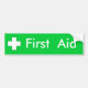 Autocollant vert, avec blancs une croix et des "premiers secours"